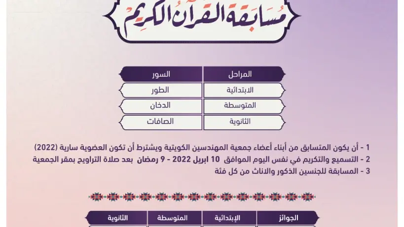 من جانبها، أوضحت مآرب اليعقوب، المنسق العام للمسابقة، أن عدد المشاركين زاد بنسبة 40% مقارنه بخمس سنوات مضت، حيث بلغ عدد المشاركين هذه السنه 3416، مما يعزز مكانه الكويت كنموذج يحتذى به في رعاية القيم الدينية.
